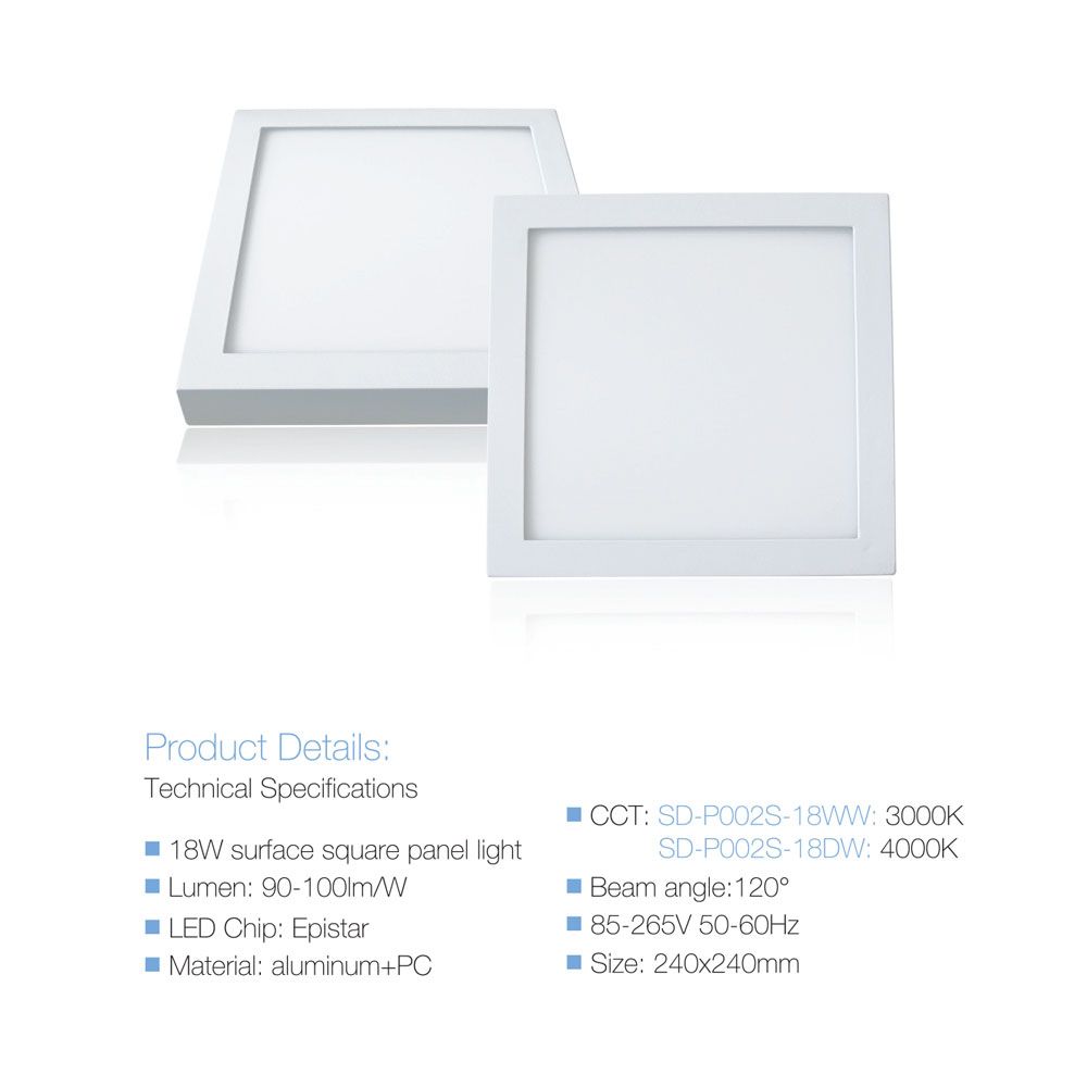 LED 18W, 180-265V, 50Hz, 4000K, 1620lm, IP20, dimenzije artikla: 240 x 240 x 35mm (dužina x širina x visina) + driver