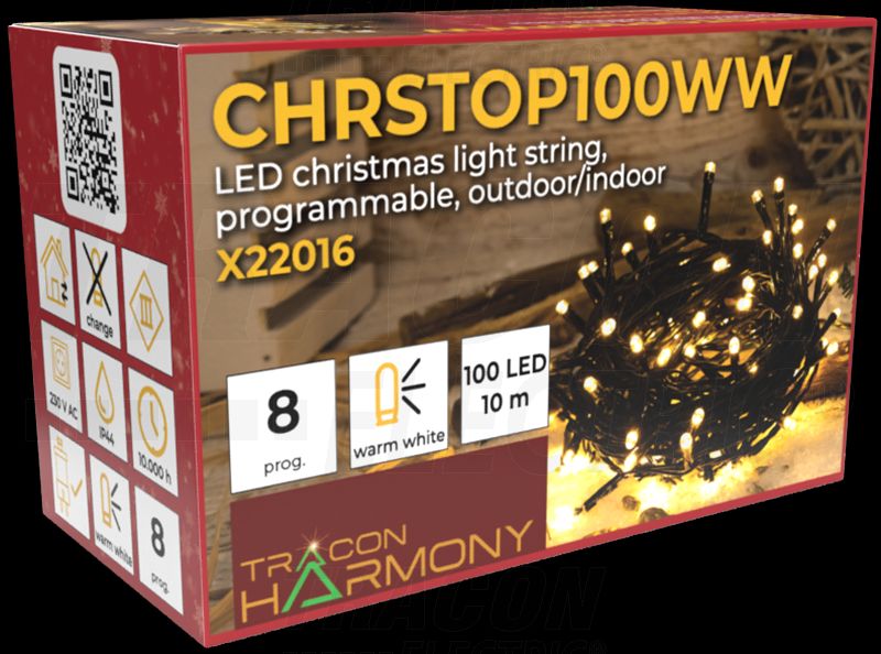 3.6W, 230VAC, 100LED WW, 2600-2700K, 8 programa, IP44 (vanjski / unutarnji), 2m kabela + 10m led svjetlosnog lanca