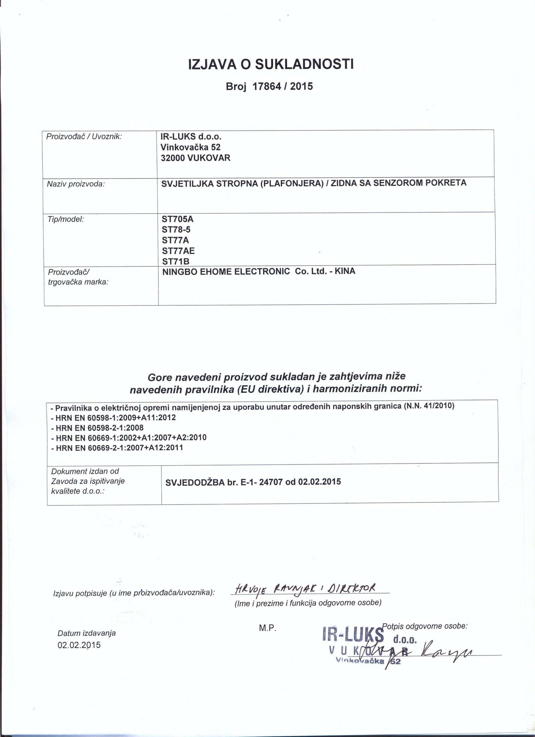 Grlo: 1 x E27 max.60 W, IP44, raspon detekcije: 360°, senzor: 1-8 metara