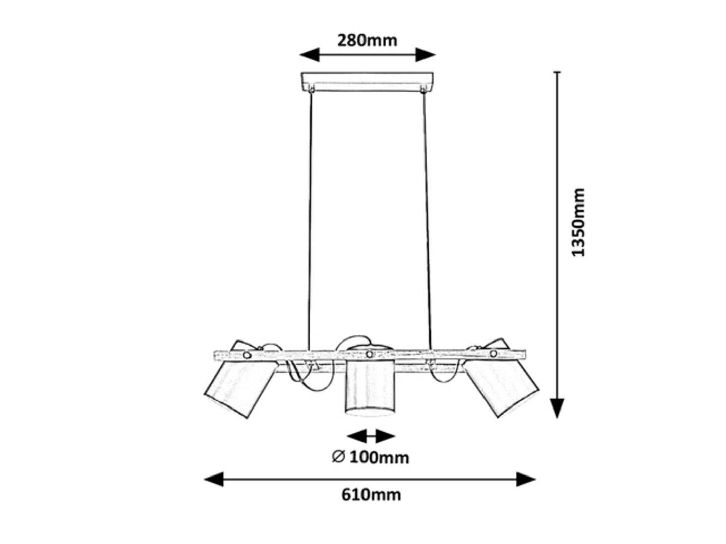 Grlo: 3 x E27 max.9W, 230V, 50Hz, IP20, materijal svjetiljke: metal / drvo, dimenzije artikla: 100 x 1350mm (promjer x udaljenost od stropa), NAPOMENA: Žarulje nisu uključene u cijenu!