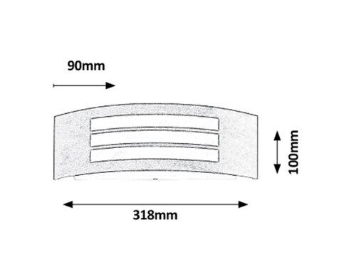 Grlo: 1 x E27, 220V, 50Hz, IP44, dimenzije artikla: 318 x 100 x 90mm (dužina x širina x udaljenost od zida)